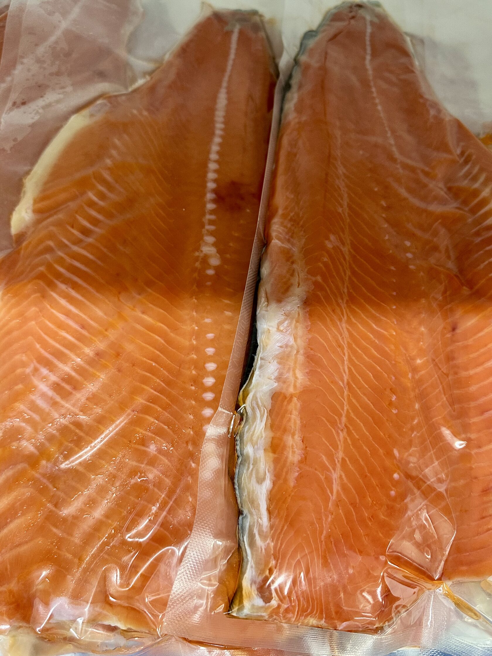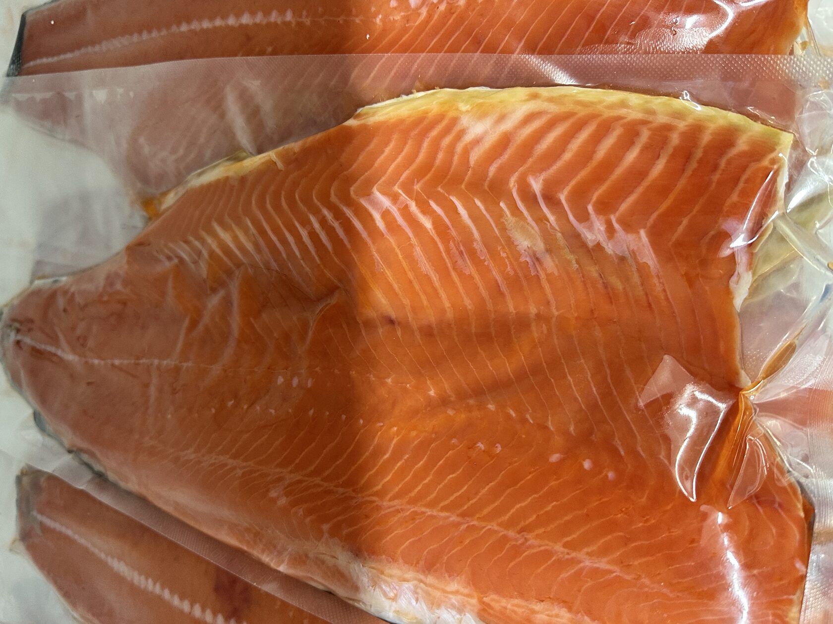 Нежное, сочное слабосоленое филе семги отличается мягким морским вкусом. При засолке каждый кусок переворачивается несколько раз, что обеспечивает равномерную заготовку. Идеально подходит в качестве самостоятельной закуски, а также для салатов.